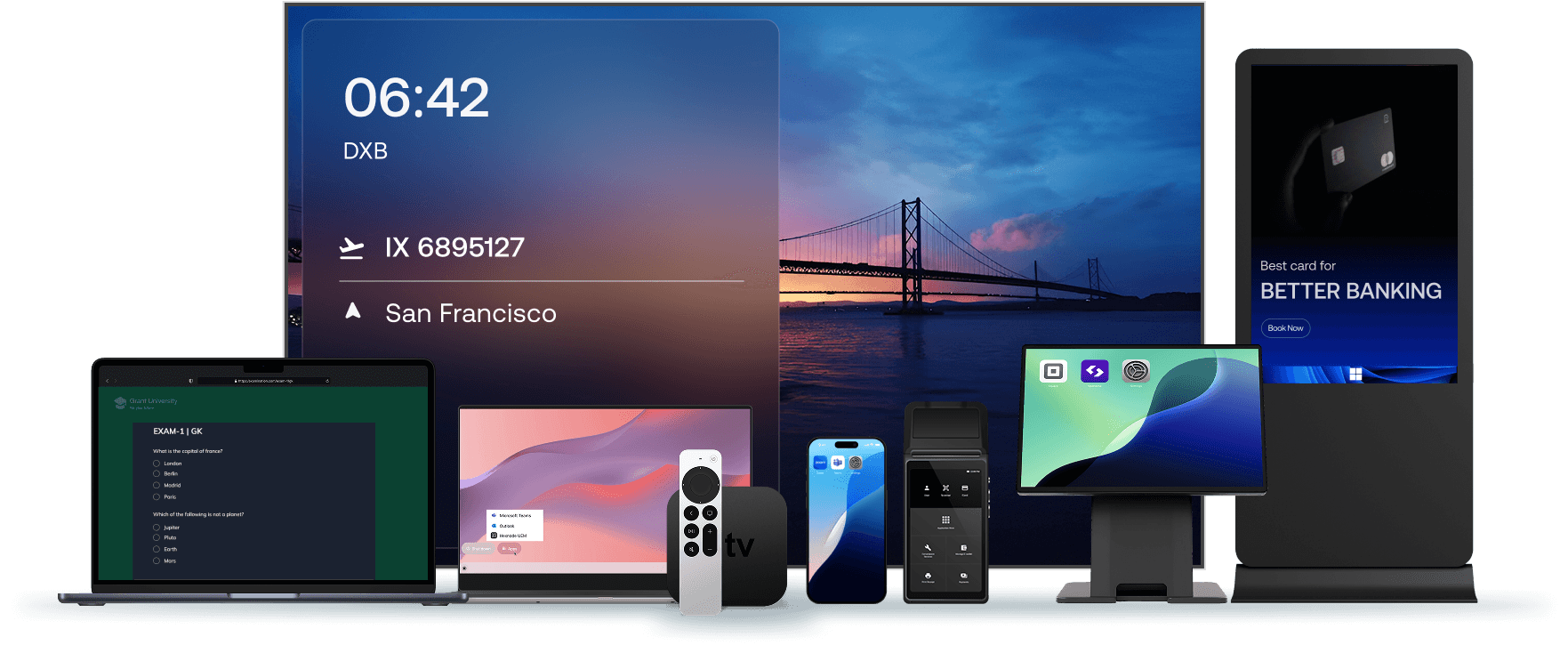 Devices across different form factors and platforms don’t need to be managed separately. Manage all your screens from a single dashboard with complete visibility and control