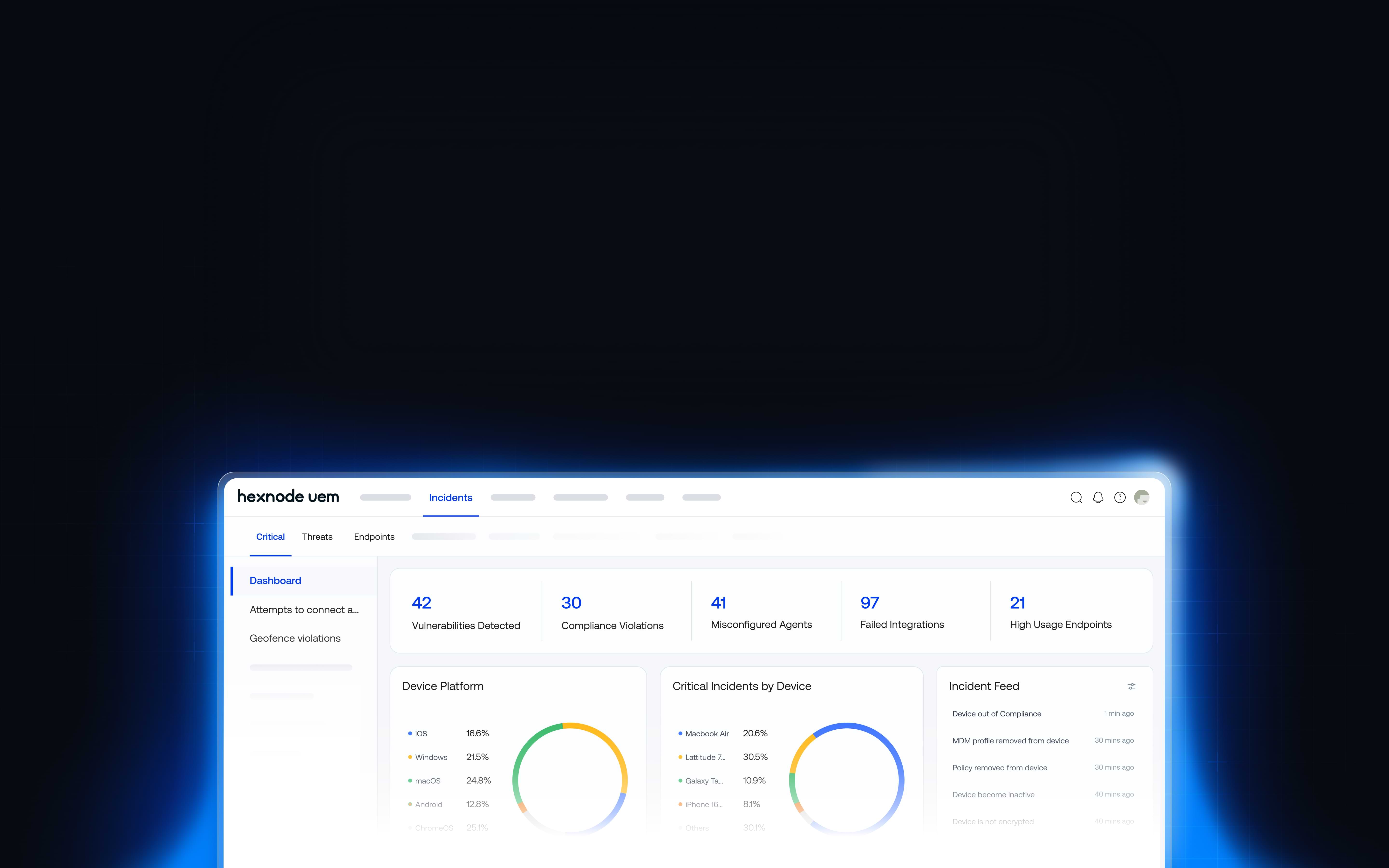 Correlate signals from devices, apps, and integrations with Henode XDR to uncover attacks in advance that traditional tools miss. Paired with Hexnode UEM, it equips your endpoints and device groups to contain and resolve complex security risks instantly.